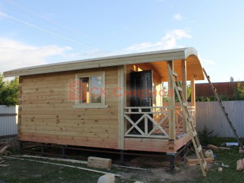 Такая одноэтажная баня 5.4х4 может быть построена из бруса. Ориентировочный срок строительства 12 дней.