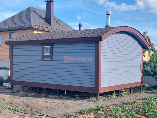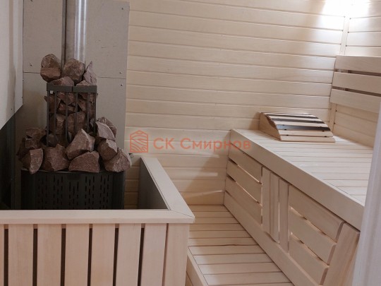 Для строительства надёжной бани 5.3х8 метров СК Смирнов разработал проект №280 с обустроенной парной и комнатой отдыха. По планировке общая площадь составляет 42.4 квадратных метров. Мы строим бани под ключ с полной отделкой снаружи и внутри.