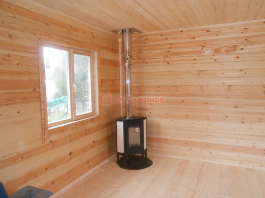 Проект типовой и довольно простой. На площади 35 кв.м. разместились просторная комната отдыха, парная, помывочная и туалет. По словам клиентов, первое время баня будет использоваться в качестве дачного домика. Как видно на фотографиях, в бане установлены 2 печи — одна печь с камнкой и выносной топкой Ермак Премиум 16 поставлена в парной, а втора — отопительная, — установлена в комнате отдыха. Она будет служить этаким камином.