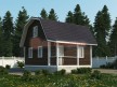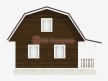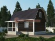 На фото представлен проект деревенского дома №2 габаритами 7х6 метров и отличной планировкой общей площадью 74 квадратных метров. Можно выделить несколько особенностей проекта: терраса. Домик с мансардой, может использоваться как дачный.