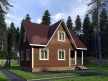 На фото представлен проект недорогого дома №95 габаритами 6х8 метров и отличной планировкой общей площадью 82 квадратных метров. Можно выделить несколько особенностей проекта: терраса, туалет, ванная, санузел. Сруб с мансардой, может использоваться как зимний, для постоянного проживания.