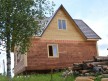 Из профилированного сухого бруса 9х14см, 14х14 см или 14х19 см. Сборка сруба в теплый угол на нагеля или гвозди 200 мм со сверлением отверстия в верхнем брусе (в зависимости от вида бруса).