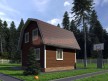 На фото представлен проект аккуратного дома №98 габаритами 6х6 метров и отличной планировкой общей площадью 60 квадратных метров. Можно выделить несколько особенностей проекта: терраса. Домик с мансардой, может использоваться как дачный.