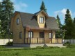 На фото представлен проект загородного дома №253 габаритами 7х8 метров и отличной планировкой общей площадью 87 квадратных метров. Это небольшой каркасный коттедж с мансардой, который может использоваться и как дачный, и как зимний для постоянного проживания.