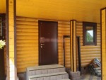 По умолчанию на вход ставится деревянная дверь с замком, однако она может быть заменена на металлическую за дополнительную плату.