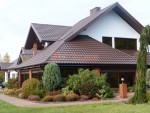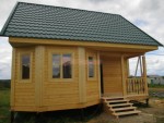 По умолчанию в качестве кровельного покрытия в базовой комплектации домов и бань идёт мягкая битумная черепица Технониколь SHINGLAS (иногда называют «ондулином»). Её можно заменить на металлочерепицу GRAND LINE с полиэстерным покрытием ( палитра RAL зелёная, красная, синяя, коричневая и пр.).